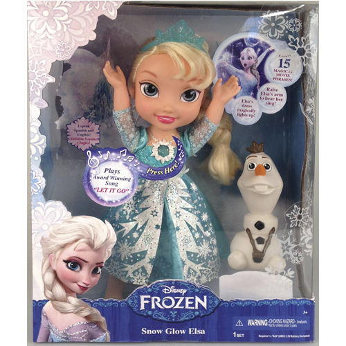 Очаровательная малышка принцесса Эльза из - яркий подарок для девочки. Дотроньтесь до волшебного амулеты принцессы Эльзы и она заговорит! А если поднять вверх ее левую руку, принцесса споет песню из мультфильма "Отпусти и забудь". Всего куколка произносит целых 15 фраз.