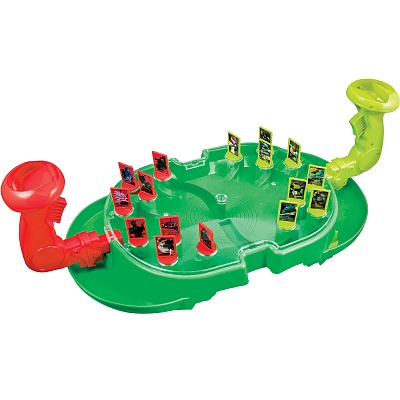 На поле, которое покрыто пластиковым куполом расположено по 8 фишек каждого игрока. Задача игрока первым сбить все фишки соперника, выстреливая шариками из специального пускового устройства.