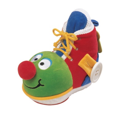 Игрушка научит ребенка завязывать шнурки, расстегивать и застеивать разные застежки.