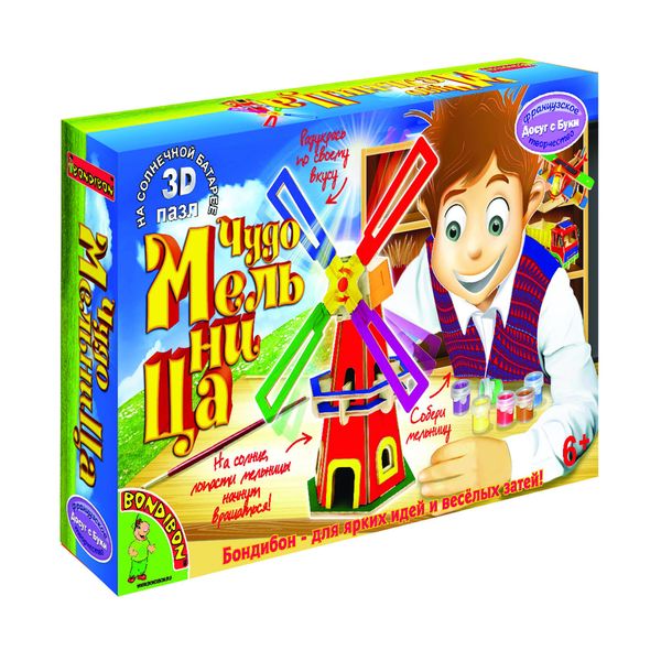 В старину деревянные ветряные мельницы были в каждой деревне, они перемалывали зерно в муку, из которой затем пекли хлеб. Сегодня же их можно увидеть разве что в сказочных фильмах да на картинках. Впрочем, не только - самую настоящую мельницу с вращающимися лопастями можно собрать самостоятельно из деталей этого конструктора. А еще ее можно красиво расписать цветными красками и сделать яркой и красивой. Моторчик с солнечной батареей позволит игрушке поворачиваться вокруг своей оси, а ее разноцветные лопасти будут вращаться точно так же, как у настоящей мельницы под воздействием ветра.