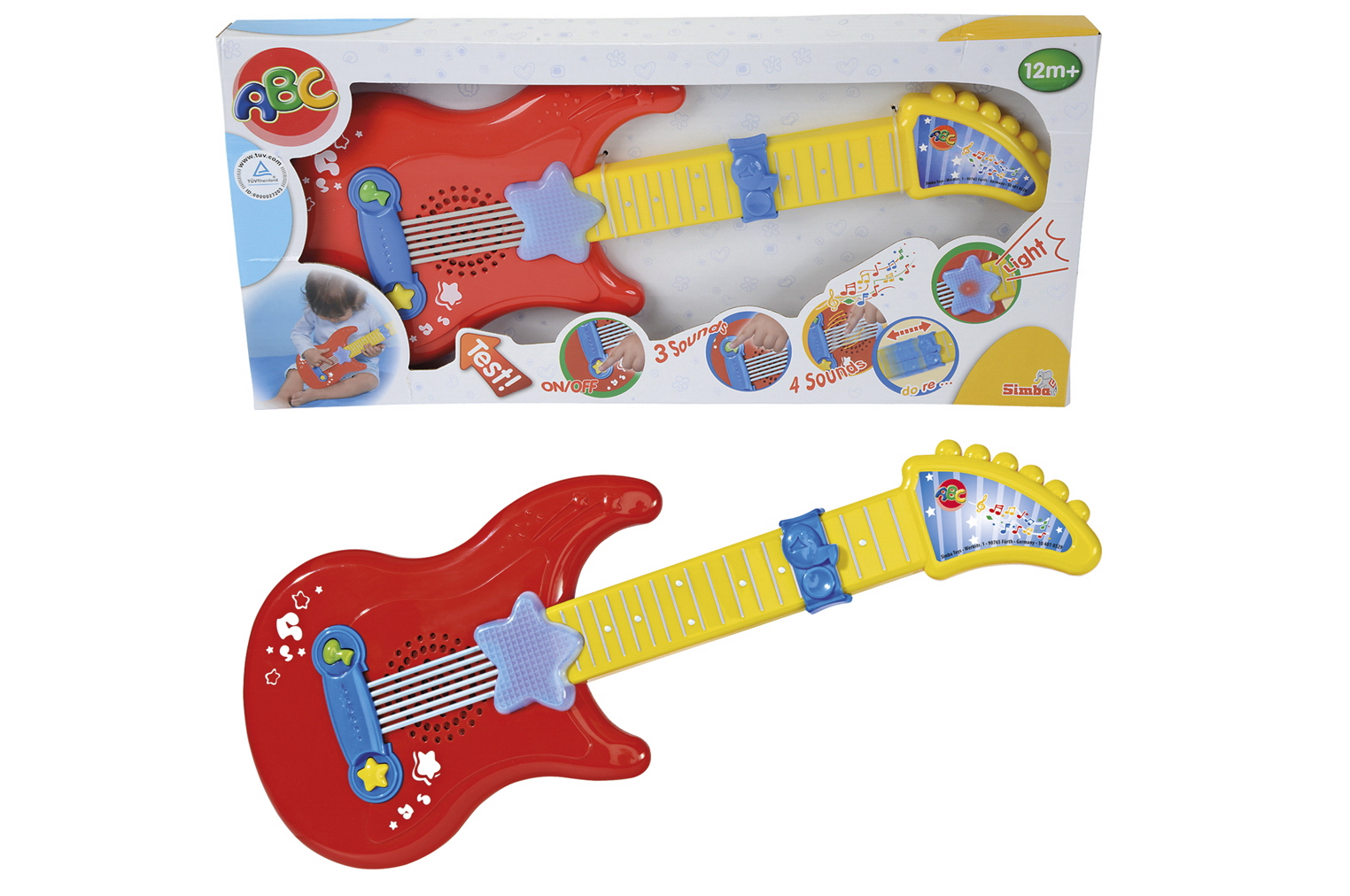Музыкальная гитара на батарейках, свет, звук, 43,5 см, 1/12