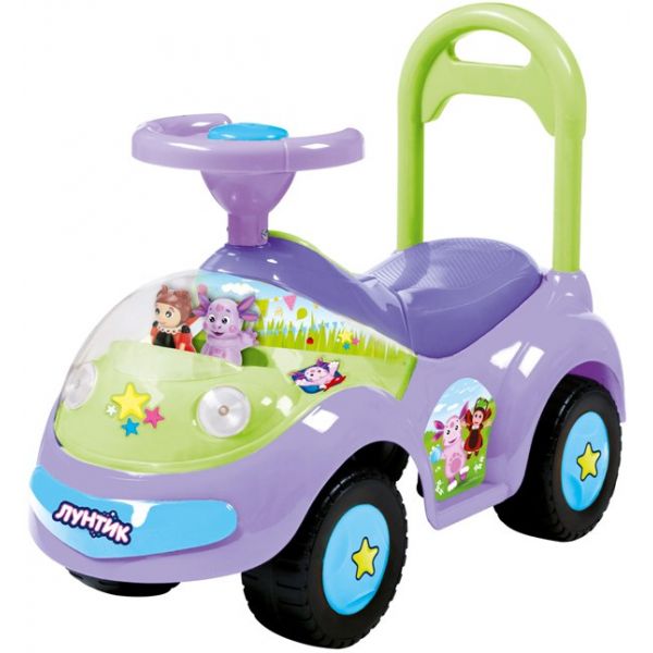 МАШИНА-КАТАЛКА "ЛУНТИК" НА БАТ. СВЕТ+ЗВУК, РУССИФИЦ., РУЛЬ-ПИЩАЛКА, 2 ФИГУРКИ В РУСС. КОР в кор.1шт