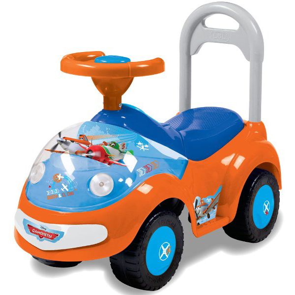 Прокатись на машинке со своими любимыми персонажами -- самолетиками из мультфильма ! Машинка-каталка станет первым и любимым транспортом для малыша. Ребенок может кататься самостоятельно, отталкиваясь ножками от пола. А если он устанет -- его покатают родители, держась сзади за ручку. Совсем крохи научатся ходить, благодаря машинке-каталке -- будут катить ее перед собой, опираясь на ручку. Юному водителю будет комфортно и весело -- есть высокая спинка, удобная седушка, подножки и задорная пищалка. Кнопка пищалки расположена на руле.