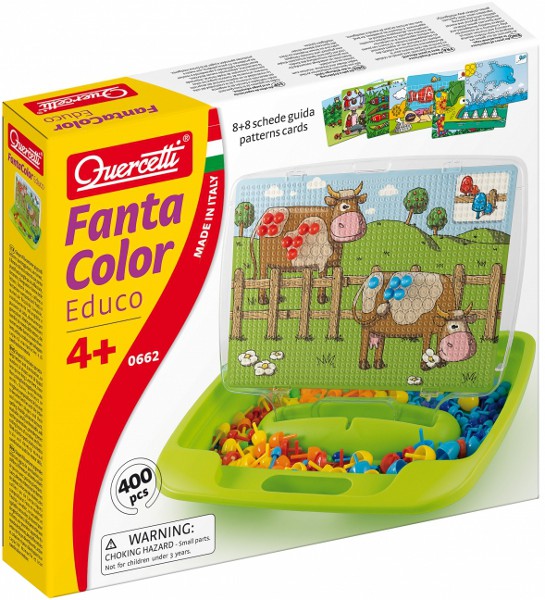 это отличная воспитательная игрушка, которая поможет детям дошкольного возраста ознакомиться с основной воспитательной игрой детского сада на дому, используя руководство к игре. Веселая и динамичная игра в мозаику - это отличный способ развить у малыша мелкую моторику рук, внимание, усидчивость и цветовосприятие. Мозаика Радуга предоставляет ребенку несколько шаблонов картинок с отверстиями, по которым он может выложить изображение поставив колышек в нужное отверстие. Все достаточно просто, но в тоже время весело и полезно для ребенка. В нашем интернет-магазине можно купить мозаику Радуга Quercetti в оригинальном кейсе с подставкой для установки дощечки в наклонное положение и специальную рамку с отверстиями для фишек.