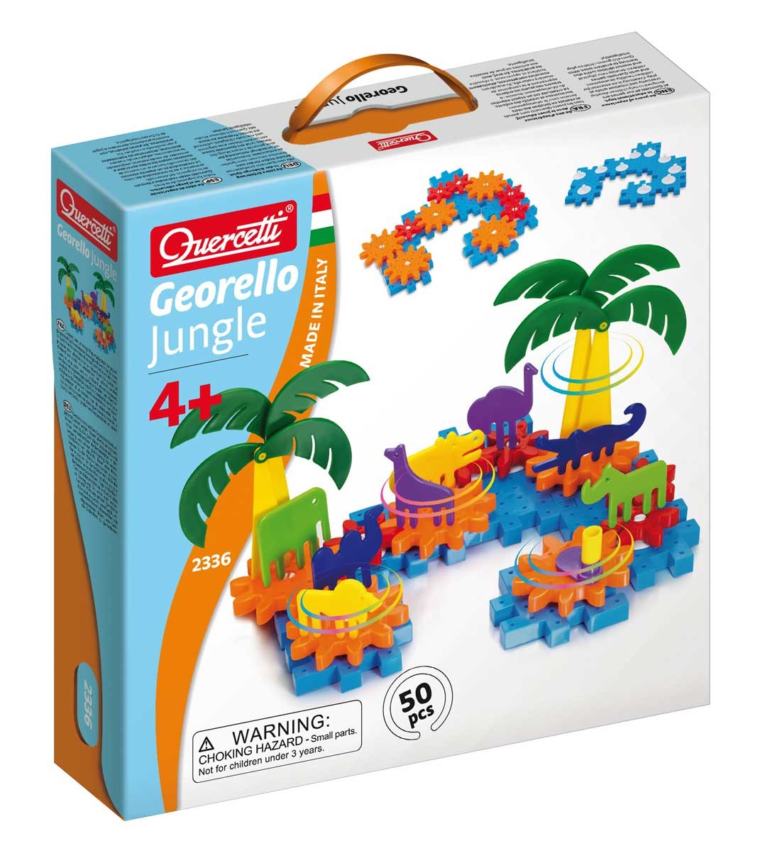 Детская развивающая игра Джунгли изготовленная компанией QUERCETTI. В этой захватывающей игре вашему ребенку необходимо будет построить свой остров с множеством пальм и животных. Благодаря шестеренкам, которые идут в комплекте, игра становится динамичной и еще более интересной. Все детали этой развивающей игры изготовлены из мягкого пластика, который можно мыть, и он абсолютно безопасен для вашего ребенка. Данная игра предназначена для детей возрастом от 4-х лет и старше. Детали мозаики имеют закругленные края, что делает игру QUERCETTI абсолютно безопасной.