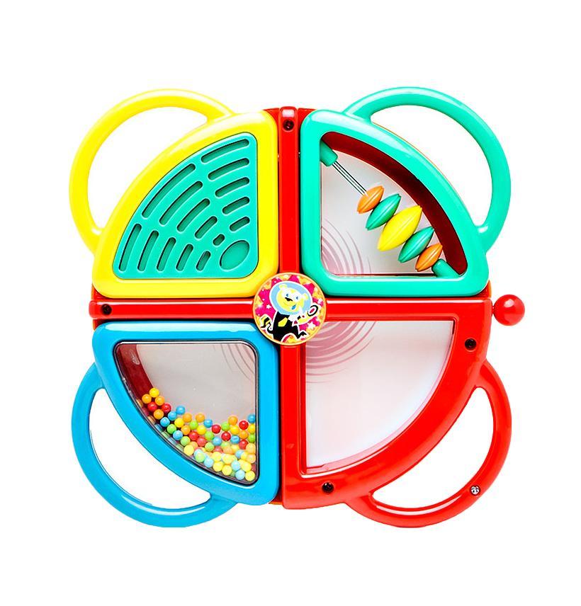Эта эффектная по дизайну игрушка, смахивающая на погремушку, меньше всего походит на барабан, но, тем не менее, модель является ничем иным, как ударным музыкальным инструментом. Конструкция игрушки поделена на четыре отсека с разным назначением, к каждому из которых прикреплена удобная ручка. В одном из них под прозрачными стеклами перекатывается россыпь разноцветных маленьких шариков, другой представляет собой счеты. При постукивании на каждый из отсеков малыш будет получать определенные, непохожие на другие звуки. Карапуз с удовольствием освоят этот инструмент. Игра на ручном барабане разовьет координацию движений, чувство ритма, слух, привьет любовь к музыке. Как и все музыкальные инструменты от компании , данная модель сделана из нетоксичных прочных материалов, совершенно безопасных для детского здоровья.