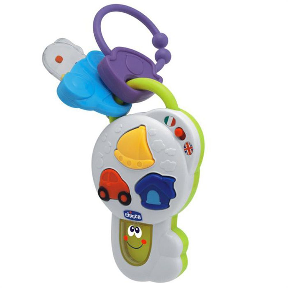 Развивающая двуязычная игрушка для самых маленьких научит малыша основам английского языка. Всего в игрушке 24 разных звука и фразы (проигрываются при нажатии кнопок). Звуки сопровождаются световыми эффектами. Ключик имеет также 2 подвески -- одна в виде погремушки, другая в виде кольца, с помощью которого можно подвесить игрушку на коляску или на кроватку. Внутри погремушки перекатываются разноцветные шарики. Игрушка активно развивает слух, восприятие, мелкую моторику, повышает языковые навыки малыша. Громкость звука можно регулировать. Язык игрушки переключается при помощи рычажка.