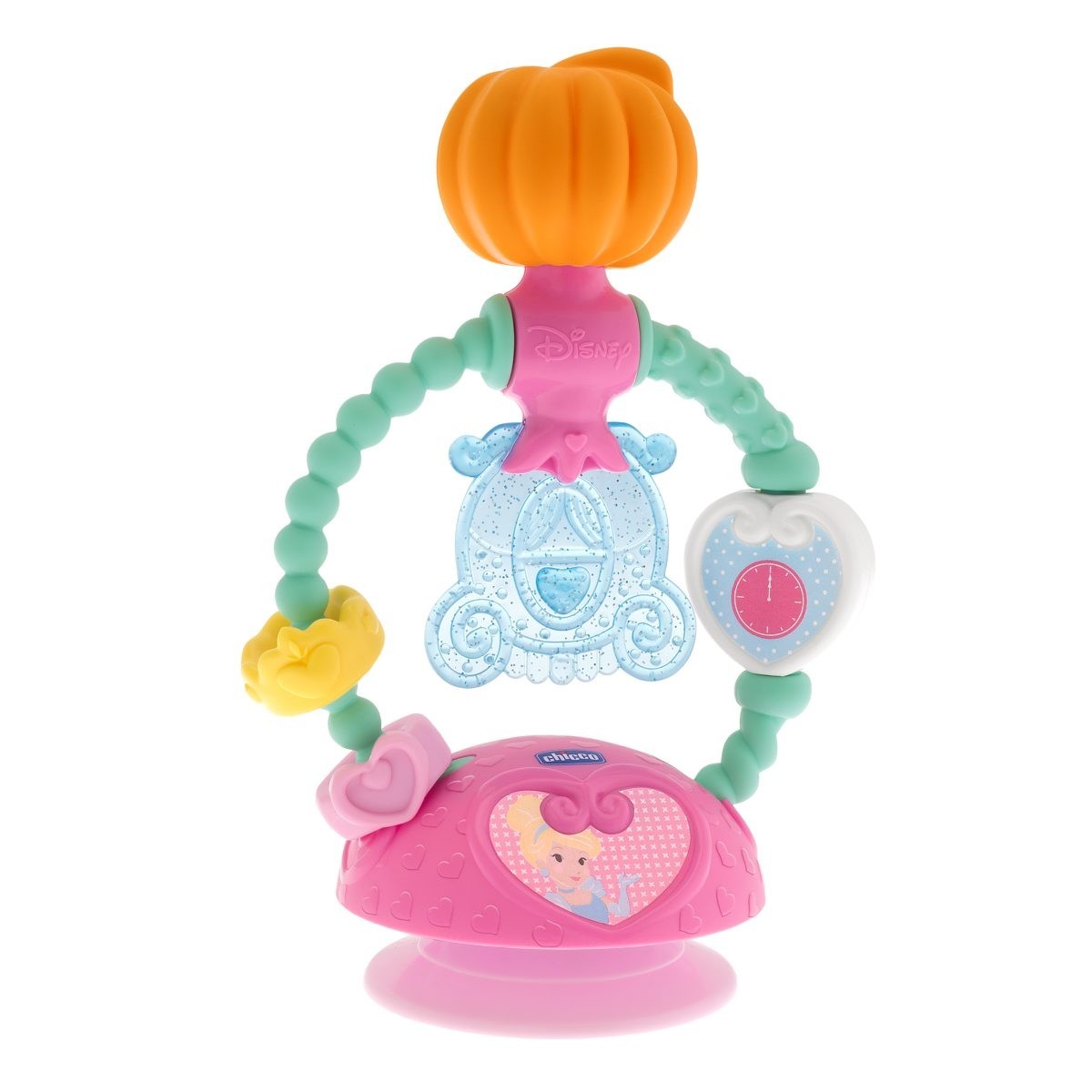 Предметы из волшебной истории о Золушке развлекут вашу маленькую принцессу во время обеда. Игрушка прекрасно развивает мелкую моторику и координацию движений рук, а с Золушкой это еще и так весело! Малышке будет интересно вращать часики, перемещать вверх-вниз корону и кольцо, вертеть тыкву и карету, которые издают звенящие звуки. Благодаря практичной присоске игрушка надежно крепится на стульчике для кормления.