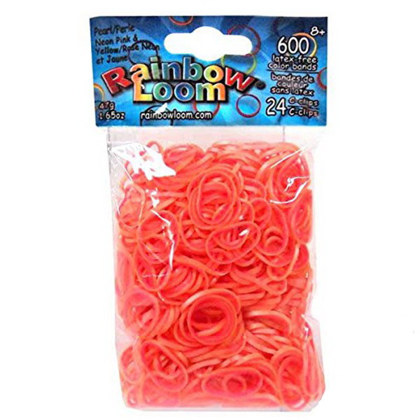 Цвет резиночек - неоновый розово-желтый.