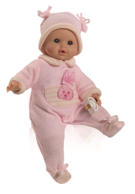 У куклы Паола Рейна с мягконабивным телом нежный ванильный аромат (гипоаллергенна).Кукла озвучена, говорит: мама, папа и плачет, если изо рта вытащить соску. Глазки закрываются.