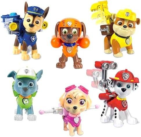 Все щенки-спасатели Paw Patrol снабжены рюкзаком-трансформером, уникальным для каждого. Рядом с ошейником расположена кнопка - при нажатии рюкзак раскрывается. Внутри находится инструмент, в зависимости от специализации спасателя.