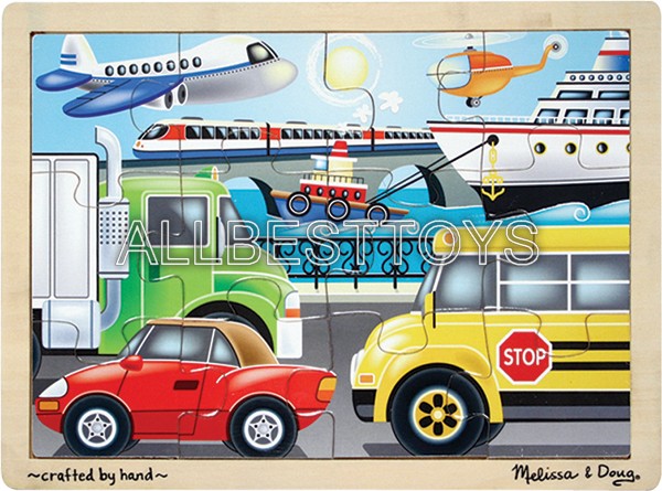 С этим деревянным пазлом из 12 частей у вас не будет проблем с транспортом. Яркие иллюстрации любимых транспортных средств пазл на суше, море и в воздухе. Игрушка упакована в прочный, деревянный лоток, ее легко хранить.