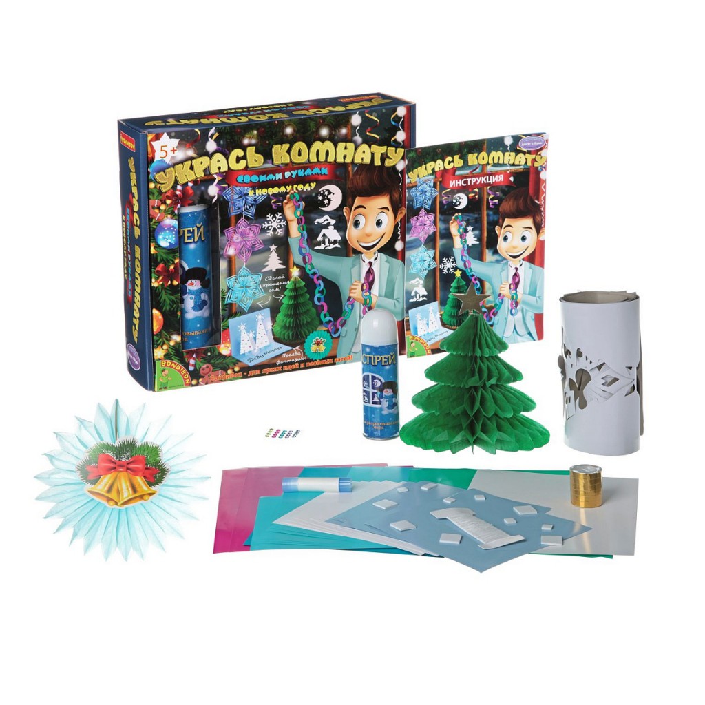 Новый год - самый важный и самый запоминающийся праздник для всех детей! Вдвойне же он запомнится в случае, если дети своими руками украсят и нарядят не только елку, но и комнату. А помочь им в этом сможет данный набор! С его помощью ребята смогут декорировать окна с использованием специального спрея и трафаретов с рисунками. Также интерьер украсит гофрированная елка и объемные снежинки, гирлянды из колец и гирлянды с белоснежными помпонами. А еще дети смогут украсить комнату серпантином, создать новогоднюю открытку и написать письмо Деду Морозу! Сделайте Новый год незабываемым!