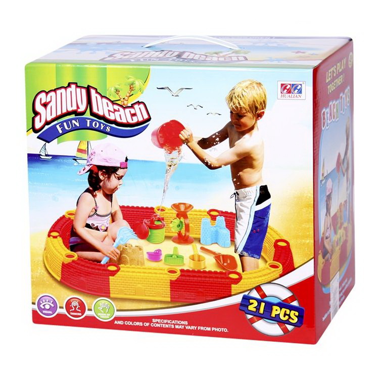 Малыши с удовольствием любят повозиться в песке, строить замки и башенки, лепить куличики в формочках. Оригинальная песочница очень удобна в применении и использовании, а также компактна при хранении. В комплекте 9 предметов: сборная песочница из 12-ти элементов, две лопатки, ведро, лейка, форма - замок, грабли, водяное колесо, сито, ковш.