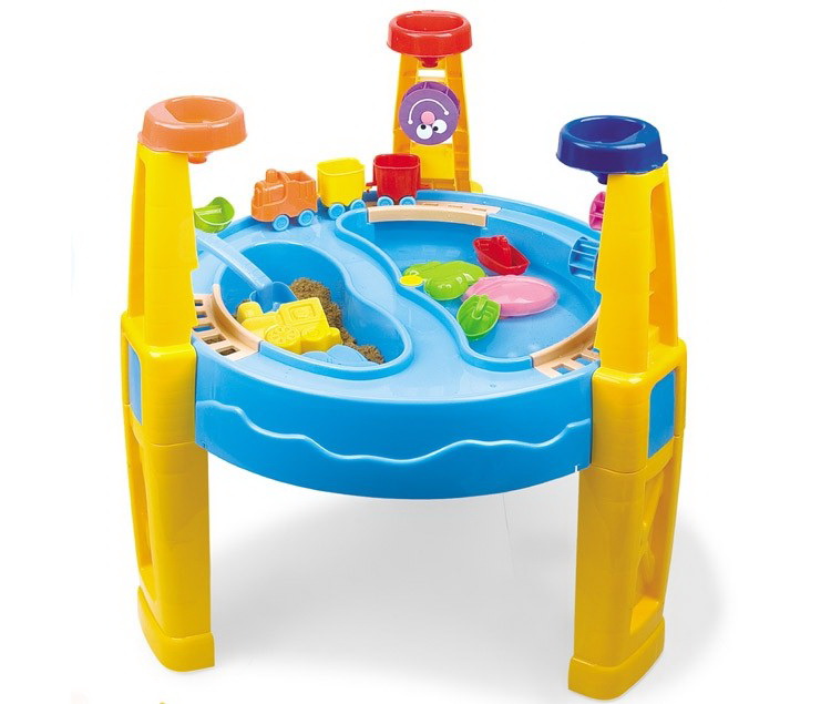 Стол-песочница сделан из прочного, нетоксичного пластика, с соблюдением европейского стандарта качества и безопасности для детских товаров. В комплект входит: стол, песочные часы, четыре формочки, ковшик, воронка, три вагончика, два водяных колеса, стаканчик, лопатка-грабли, два кораблика, совок, три рельсы, два вкладыша. Конструкция стола отличается высокой надежностью и оригинальностью, она легка в эксплуатации и не требует дополнительного ухода.