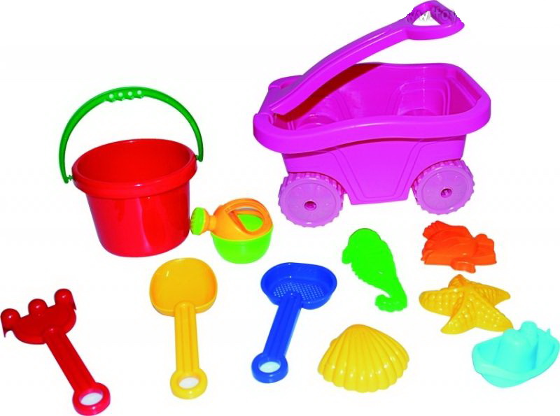 Для приятного и полезного времяпрепровождения на свежем воздухе просто необходимо наличие такого оригинального игрового набора. Красочный набор предназначен для веселой игры с песочком и водой, и предполагает несколько вариантов применения: для лепки куличиков-пасочек, насыпая песок в формочки и поливая лейкой для придания формы; для постройки башней-замков; для садовых работ при использовании лопатки, совочка и грабелек; и многое другое, не менее познавательное и интересное. Для воспроизведения новой игры в комплекте предусмотрены: лейка, лопатка, грабли, совок, формы и формочки, ведро и вместительная тележка на колесиках с удобной для транспортировки ручкой. Игрушки из набора способствуют развитию тактильных ощущений, мелкой и крупной моторики, а также его двигательной активности. Все элементы выполнены из качественного и прочного материала, не содержащего в составе вредных красителей.