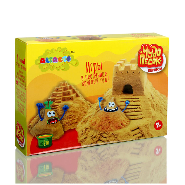 С чудо-песочком детишки смогут сполна проявить творческие идеи и слепить песочные пасочки-куличики, возвести замки и пирамиды. Песок никогда не высыхает, легко разминается, принимает любую форму и абсолютно безопасен, с ним можно играть в любое время, снова и снова! Изготовленный по инновационной технологии, экологически чистый песок придаст новый формат играм в песочнице. В составе материала для лепки только натуральные компоненты: песок, воск, пигмент цвета.