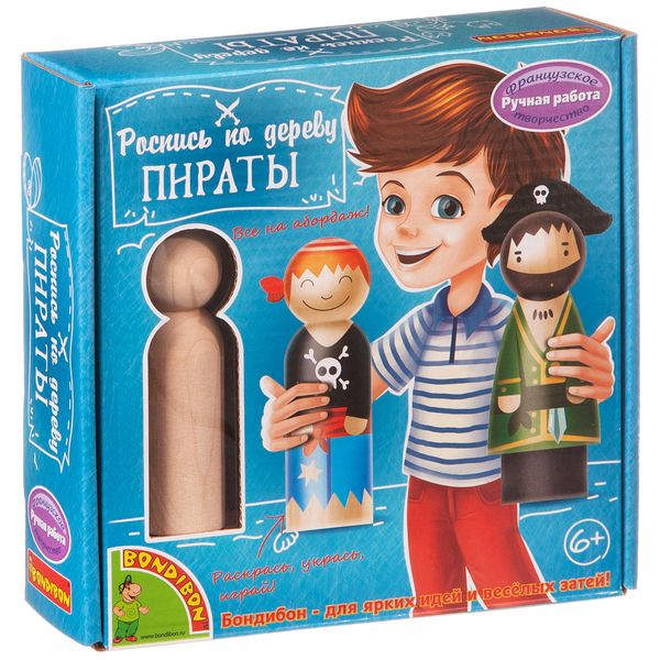 BONDIBON. Роспись по дереву - творческий набор, который обязательно придется по вкусу юным художникам! Забавные персонажи, множество вариантов для росписи фигурок, материалы для украшения, простор для фантазии, советы по изготовлению - в комплекте. Детки создадут свою, особенную коллекцию игрушек. Это может быть целая пиратская команда, или волшебные феи- подружки, или даже портрет своей семьи! В набор также входят специальные "помощники" : калька и цветные макеты для переноса изображения на заготовку.