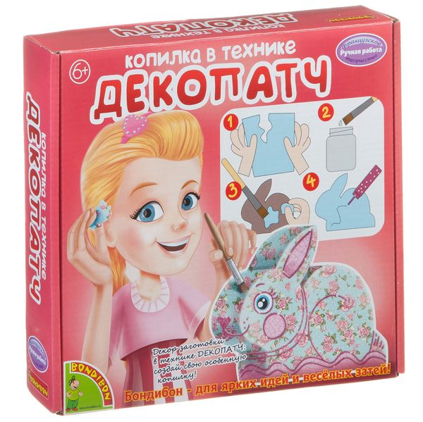 BONDIBON. Набор, обучающий уникальной технике "росписи" бумагой -технике ДЕКОПАТЧ. С помощью подробной инструкции Ваш ребенок самостоятельно освоит новый вид творчества и сделает из простой заготовки свою особенную, авторскую копилку. Все необходимые материалы для работы - в комплекте!