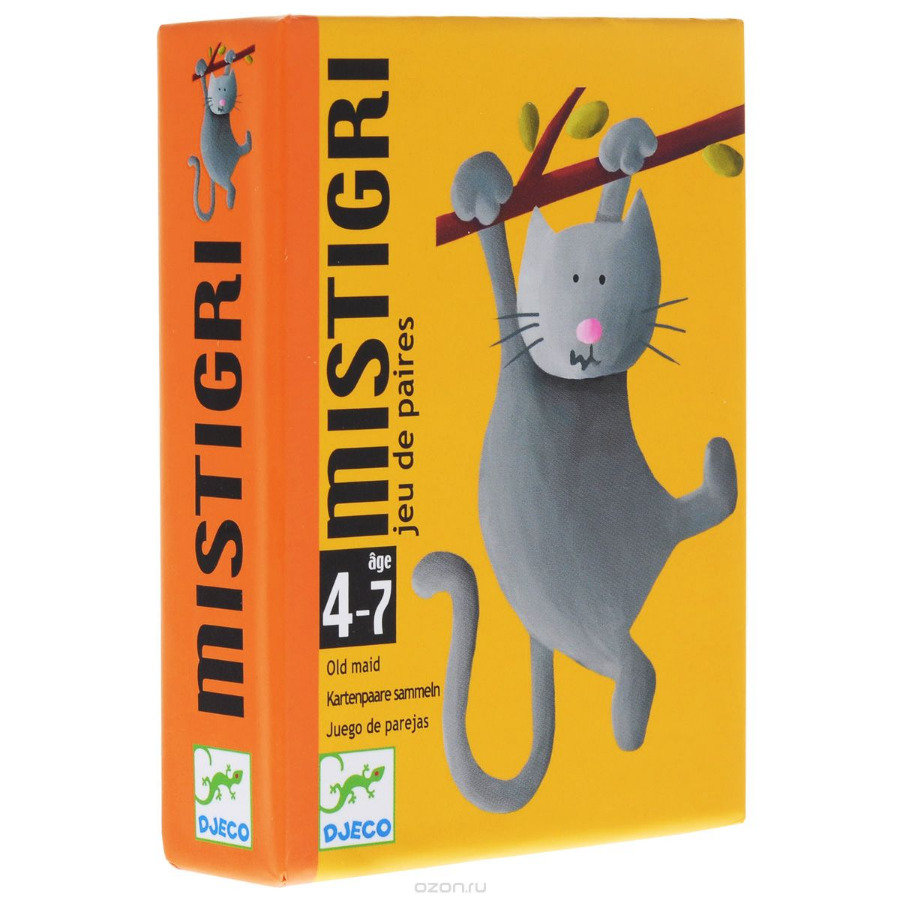 Колода состоит из 33 карт, 32 парные карты и одна карта Мис*ти*гри с изображением котика. Выбирая по одной карте из карт соперника слева необходимо собирать пары и выкладывать их, и к окончанию карт не иметь на руках карту Ми*ст*игри.