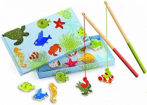 D*jec*o Игра "Тропич*еская ры*балка" это, в первую очередь, конечно же, увлекательный процесс рыбной ловли. Но не только. Ведь сколько тут увлекательного и познавательного! Вот это - скат. Почему он плоский? Потому что живет на дне. А это краб. Зачем ему клешни? А черепахе зачем панцирь? Чем интересен морской конек? Давай об этом почитаем в книжке. В набор D*je*co входят рыбки и удочки с магнитами. Материал - дерево.