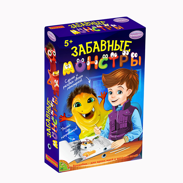 Набор для творчества - придумай и раскрась своего монстрика. Состав набора: блокнот с набросками 1шт., набор цветных карандашей 8шт., точилка с ластиками 1шт., клей 1шт., глаза пластиковые разного размера, кусочек пряжи для волос , наклейки 2шт., инструкция. С нашим набором ребёнок не только создаёт забавных монстров, но и учится рисовать.