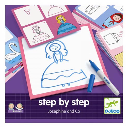 В красочной коробке хранятся карточки с заданиями. На каждой учебной карточке изображен рисунок по этапам его рисования. Ребенок повторят элементы рисунков, зарисовывая их на специальной доске. Рисовать по доске можно стираемым маркером, который идет в комплекте. А это значит, что ошибок бояться совершенно не нужно. В любой момент рисунок можно стереть и начать все заново. Заданий юному художнику хватит надолго, их в наборе много - целых 24 карточки.