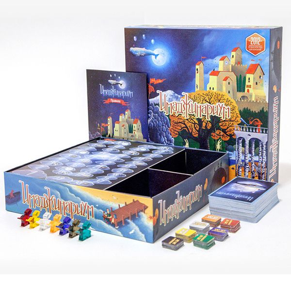 В этой удивительной игре победа достигается не ловкостью рук и везением, а проницательностью и глубиной воображения. Вам предстоит придумать ассоциации к картинам и отгадывать то, что задумали другие игроки. Каждая партия "Имаджинариума" окажется уникальной и неповторимой, как облако. Или как снежинка. Зовите друзей и погружайтесь в волшебную атмосферу игры! На каждом ходу участники придумывают и отгадывают ассоциации к необычным иллюстрациям на картах, которые созданы именитыми российскими художниками. В 2015 году мы изменили набор игральных карт - теперь в базовую версию "Имаджинариума" можно играть в кругу семьи с детьми от 12 лет. - Игровое поле; - 98 карт ассоциаций; - 7 фишек слонов; - 42 жетона голосований; - Правила игры.