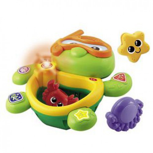 Игрушечная черепаха, умеющая прекрасно держаться на воде и плавать, к тому же водонепроницаемая! Опустите или выньте ее из воды, чтобы малыш услышал забавные звуки и мелодии. В живот черепахе можно поместить 3 фигурки морских животных и услышать веселые звуки. Фигурками можно брызгаться и наполнять их водой. Подобная игрушка поможет ребенку запомнить цвета и фигуры, выучить названия животных, а также развлечет 2 песенками из мультфильмов.
