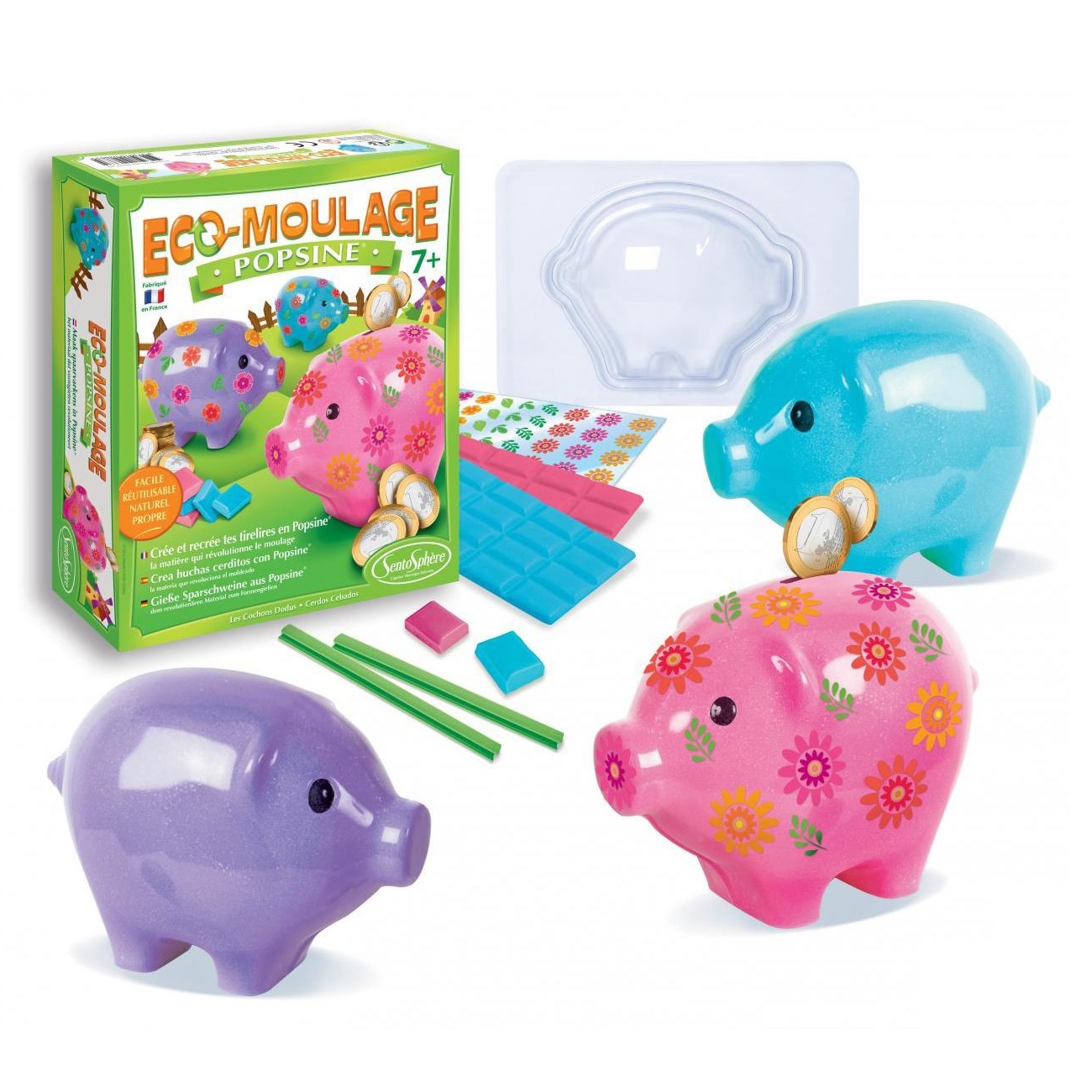 Набор для творчества "Свинья-копилка" из серии Popsi*ne (Попсин) предназначен для детей, которые любят создавать уникальные вещи своими руками. С помощью такого набора дети смогут создать несколько интересных фигурок маленьких свинок, и разукрасить их по своему вкусу цветными фломастерами, которые идут в наборе. Цветной материал для изготовления свинки-копилки можно смешивать между собой и добиваться уникальных оттенков. При необходимости уже созданные и раскрашенные фигурки можно переплавить. Готовая свинка-копилка отлично подходит для хранения детских сбережений.