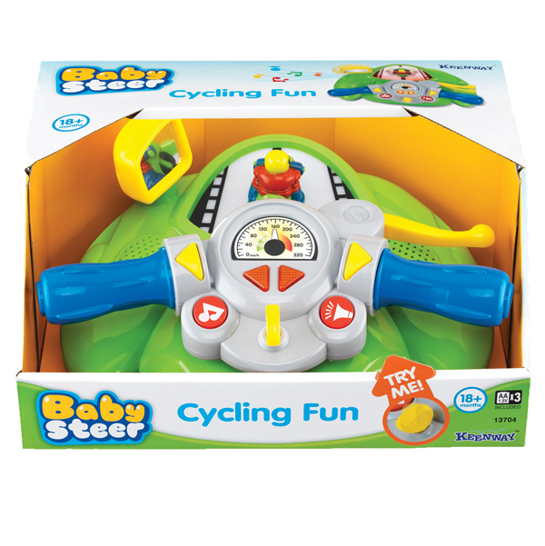 Для самого юного автогонщика! У игрушки имеется небольшое полотно дороги, мотоциклист и рулевое управление, с помощью которого меняется направление мотоцикла влево и вправо. Эффект движения полотна дороги достигается с помощью последовательного включения лампочек под полотном. Вождение сопровождается световыми и многочисленными звуковыми эффектами.