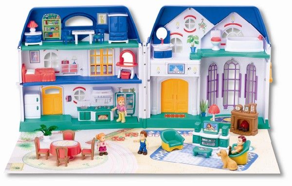 -мебель: кровать,шкаф, туалетный столик с зеркалом, комод, настольная лампа, диванная подушка, камин, кабинет с hi-fi, телевизор, торшер, обеденный стол с 4 стульями, цветок, диван, кресло, журнальный столик, кухонный гарнитур, холодильник, обеденный стол с 2 стульями, ванная, раковина с зеркалом и унитаз.