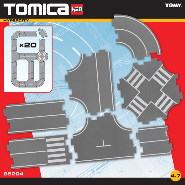 С этим набором ваши возможности в строительстве города Tomica увеличиваются! В коробке вы найдете 20 новых частей для строительства дорог! Из набора возможно построить 6 вариантов дороги.