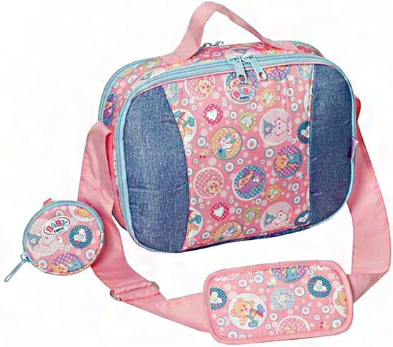 Модная и удобная сумочка с логотипом BABY born имеет два отделения с застежкой "молния". Внутри сумочки имеются кармашки для хранения необходимых мелочей. Сумочку можно носить на плече на длинном ремне или в руках на короткой ручке. К сумочке с помощью карабина можно прикрепить маленький круглый кошелек. Прекрасный подарок для девочки!