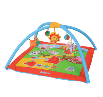 на дуге - погремушка (x1), пищалка (x1), мягкая игрушка (x1)