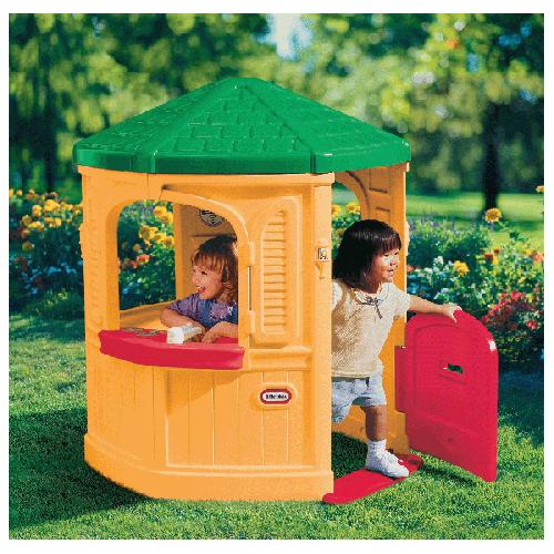 Компактный красочный домик необычной округлой формы, его реалистичный дизайн покоряет с первого взгляда (крыша как будто выложена черепицей, а стены обшиты сайдингом). В домике есть: 3 больших окна (они обрамлены имитацией ставней), голландская дверь (с прорезью для почты и порогом, легко открывается и закрывается, так что малыш справится с ней без помощи взрослых), раковина и плита. Большим достоинством данного домика является его компактность, он не займет много места на Вашем газоне, но в тоже время размеры позволяют разместиться там двоим малышам одновременно. При изготовлении домика применяется метод центробежного литья, что позволяет сделать его ударопрочным и устойчивым к перепадам температур. Выдерживает температуру до -18?С.