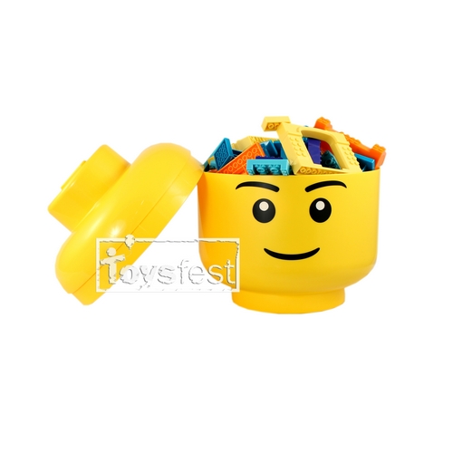 Контейнер представляет собой знаменитую "Голову" Lego, которую приспособили для хранения конструктора Lego. Контейнер выполнен в форме головы "Мальчика Lego", Верхняя часть снимается, а внутри можно хранить все что угодно.