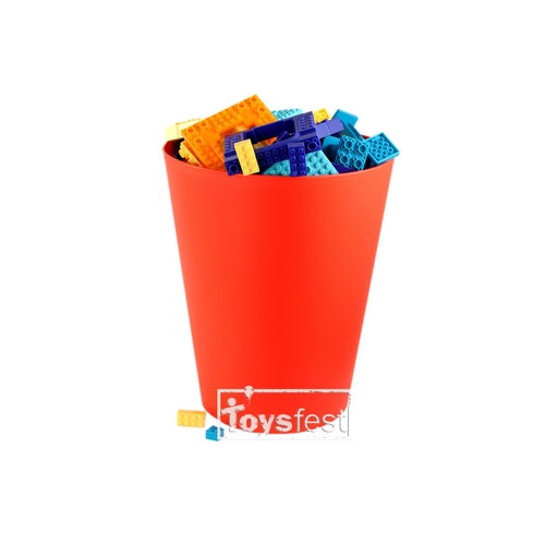 Контейнер представляет собой корзину выполненную в форме урезанного конуса синего цвета, закрывается крышкой, а ручка выполнена в виде головы человечка Lego.